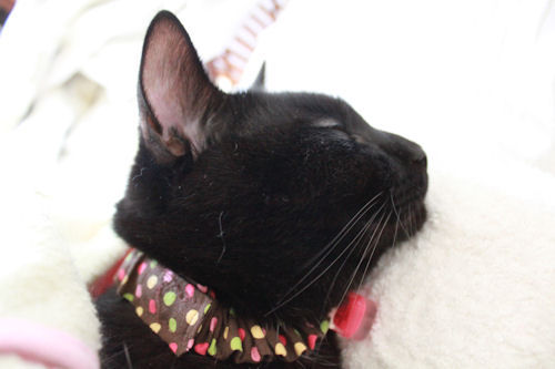 My eye now consists of eyelashes on top with some black eyeliner over the middle top of the lid near the lashes for emphasis. Then I line the inside of my eye on the bottom lid with more eyeliner from the outer corner to a little less than half way, and put on a short eyelash near the lined part. I use light pink shiny eyeshadow all the way under my eye and emphasize the middle with a little shiny white eyeshadow and blend.